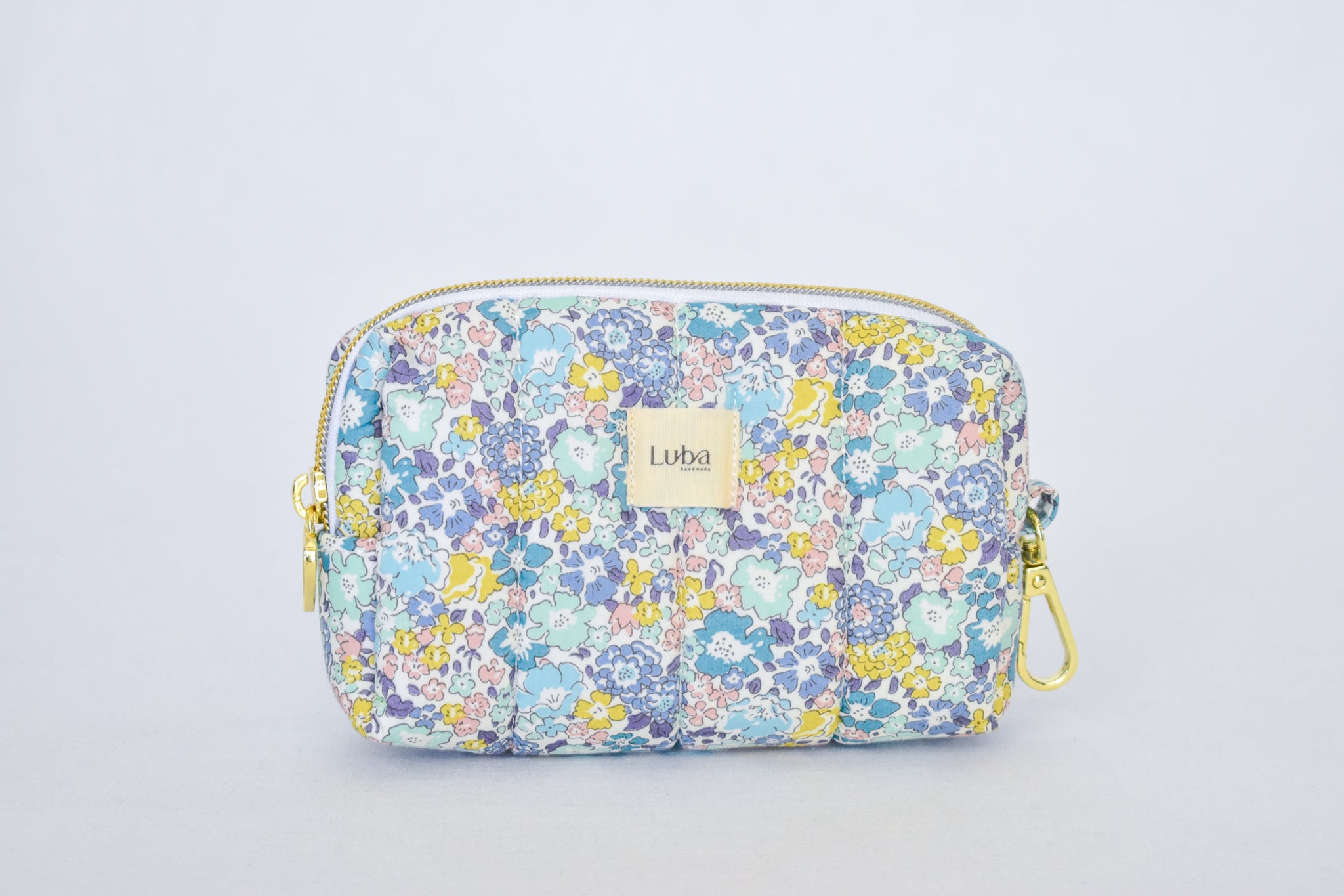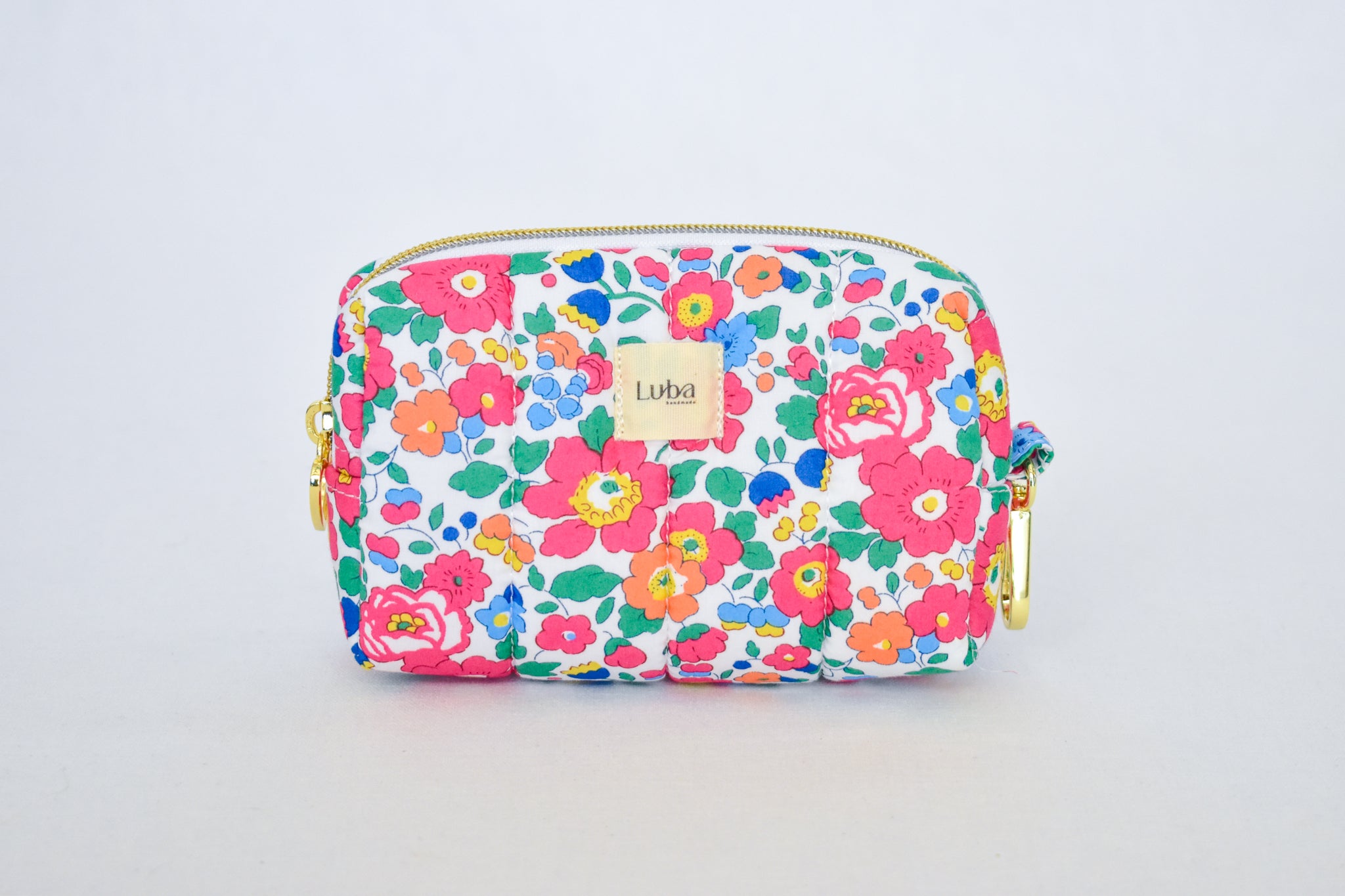 Charming mini toiletry bag crafted from patchwork Liberty fabric. Each bag...
