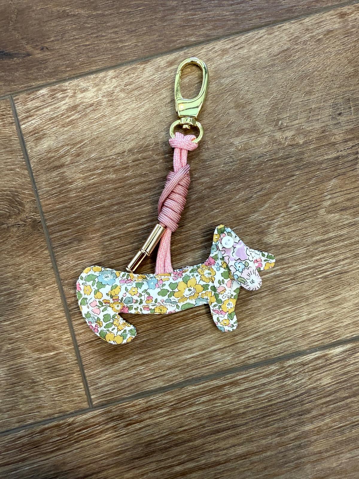 Cute dachshund charm in Betsy Ann pink floral fabric, finished with...